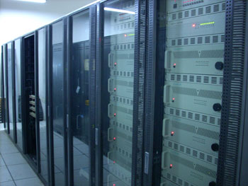 機房采用大功率的下送風HIROSS機房空調,使機房保持恒溫、恒濕、新風狀態。